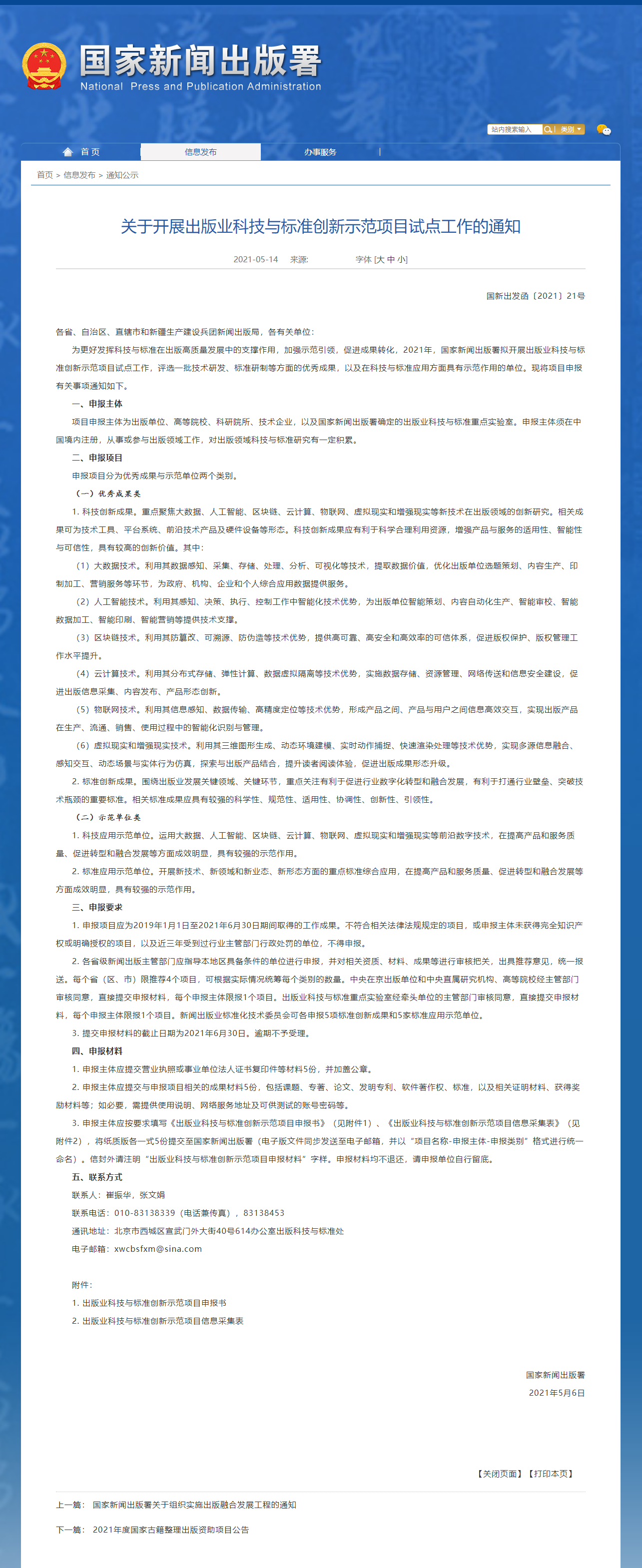 Notice on carrying out pilot work of new demonstration project of science and technology and standards in publishing industry